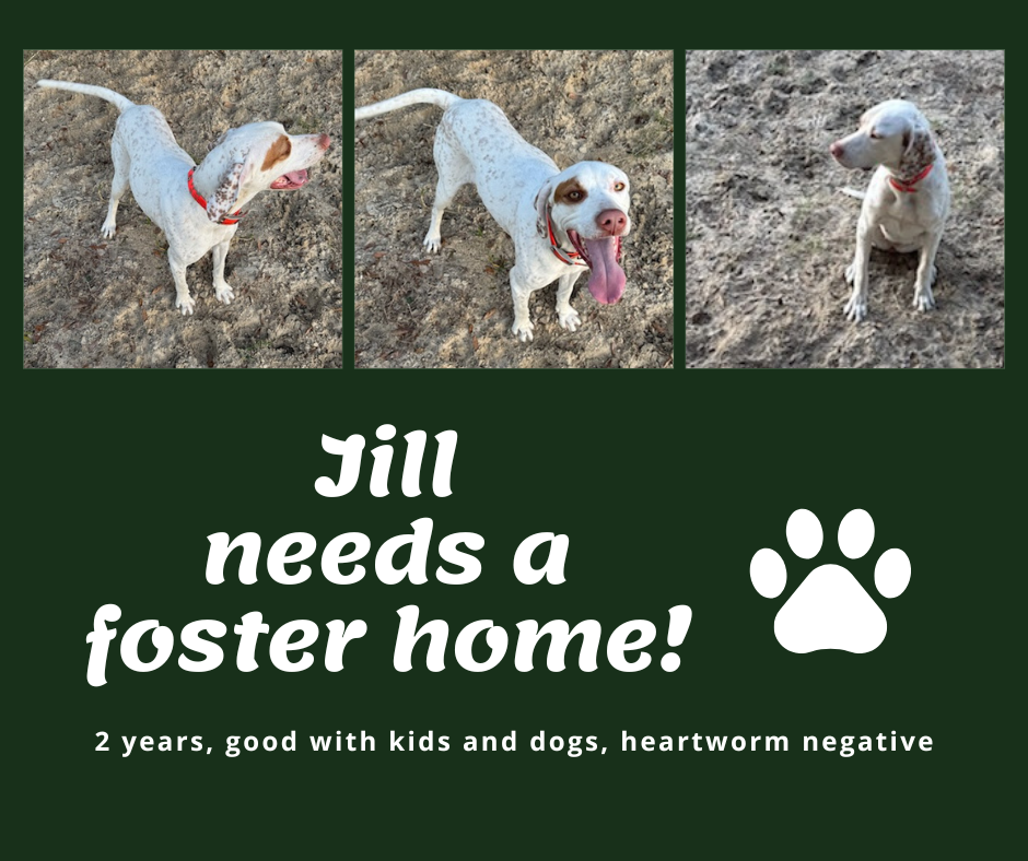 Jill finds herself needing our help due to being a bit gun shy. Jill is said to be athletic and a great retriever. She is not yet spayed but is heartworm negative and good with other dogs and kids. Please consider fostering Jill!